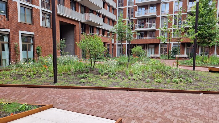 Voor een vrij complex project in het stadscentrum van Den Bosch (NL) werkte onze partner Du Pré Groenprojecten aan de realisatie van de daktuin bovenop de parkeergarage van het woongebouw Amadeiro. Met een beperkte maximale belasting van het onderliggende parkeerdek was de uitdaging niet alleen om naar het potentieel te kijken, maar ook naar de mogelijkheden van het dak.