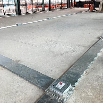 Voor dit project is gekozen voor de HPL Combi70 instortbehuizing met verzonken vloergoten. Dit systeem is geschikt voor gevlinderde betonvloeren en beschikt over een instelbaar stelframe van 70-90 millimeter. Daarnaast is gekozen voor onze vloerdozen met RVS deksels, voorzien van een oplegrand om oneffenheden te voorkomen.