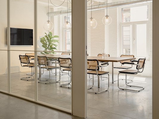 Jan Geysen van Puur interireurarchitecten over de systeemwanden van QbiQ: "De sfeer terugbrengen van het voormalig pakhuis was het uitgangspunt in het ontwerp. Het gekozen glazen wandsysteem van QBIQ paste helemaal in ons concept. De samenwerking en uitvoering met QBIQ is daarbovenop vlot verlopen."