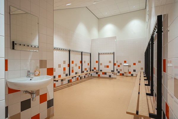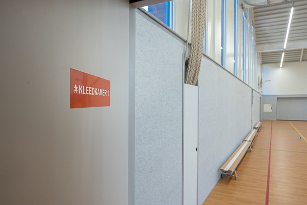 De kap is uitgevoerd als een zogenaamde “sheddak”, een reeks van zadelkappen, die constructief efficiënt kunnen worden geconstrueerd. De nagenoeg noord-zuid georiënteerde kap biedt ruimte aan PV panelen, maar draagt in belangrijke mate bij aan de sfeer van de zaal die een groot deel van de tijd dienst doet als bijeenkomstruimte voor de school. De ‘houten’ vloer, veel aandacht voor de akoestiek in de zaal, een rustige kleurpalet en veel daglicht zorgen ervoor dat de zaal een prettige verblijfsruimte is.