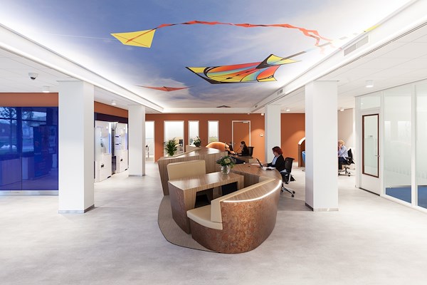 De vliegers op het plafond zijn een verbeelding van de stad Den Helder als kust stad. Het centrale aanland meubel resoneert met de maritieme vormen waar klanten soepel omheen kunnen bewegen.
