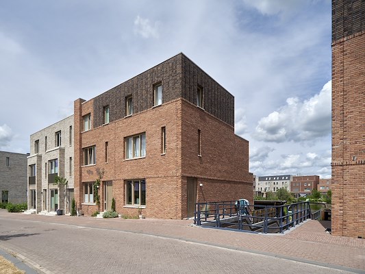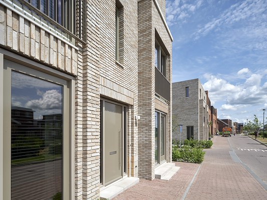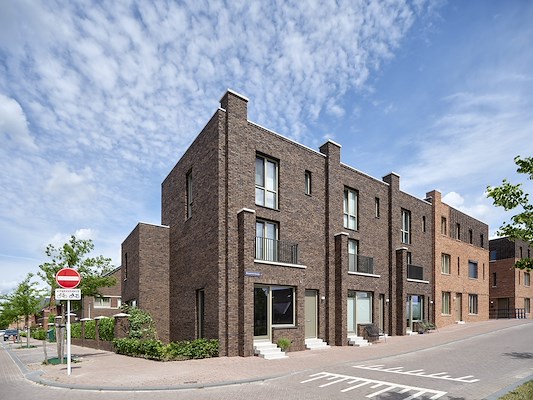 Het stedenbouwkundig plan is van West 8, waar de bebouwing aansluit op bestaande bouw is gezocht naar een harmonieuze overgang. We hebben gekozen voor een gevarieerd gebruik van 4 kleuren gevelstenen om samenhang te creëren tussen de vier verschillende woonsferen, de diversiteit in woningtypes en de aansluiting bij de Tuinen van Amerstaete. De hof en de lanen gebruiken elk 1 kleur. Deze kleuren vind je terug in de rijtjes aan de Laak en de Binnenlaak, gecombineerd met nog twee andere tinten. Om ervoor te zorgen dat de straten mooi in elkaar overlopen, krijgen de hoekwoningen aan de Binnenlaak dezelfde dakvorm en kleur als de vriendelijk- ogende tweekappers aan de laan. Diezelfde tweekappers komen ook aan de westzijde van het plan, waar we aansluiten bij de ontwerpen van Amerstaete.