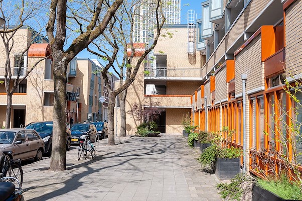 DaF-architecten heeft na historisch onderzoek een nieuw kleuren schema opgesteld voor het blok en een afsluiting voor de galerijen ontworpen die past bij het monumentale karakter van het trappenhuis. Zo heeft een van de iconen van de Rotterdamse stadsvernieuwing zijn theatraal optimisme terug gekregen.