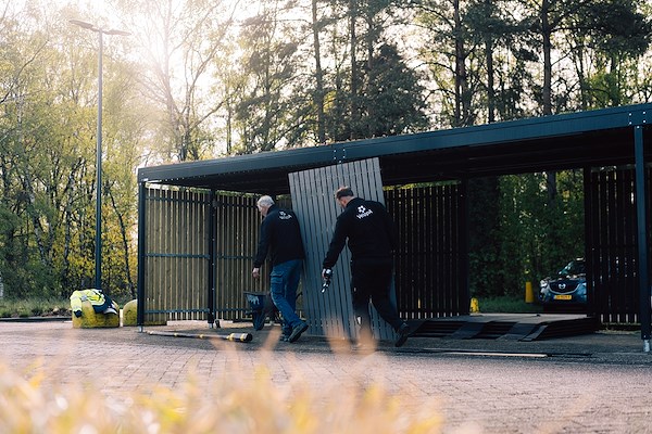 waar werknemers hun motoren, brommers, scooters en andere tweewielers droog en veilig kunnen parkeren. Een belangrijke wens was dat de motorstalling zou worden gebouwd met planken uit het Trespa Second Life programma, waarmee Trespa haar gebruikte panelen een tweede leven geeft. Trespa-panelen zijn namelijk uitermate geschikt als wandbekleding voor overkappingen door hun lange levensduur, minimale onderhoudsbehoefte, eenvoudige reiniging en weerbestendigheid.