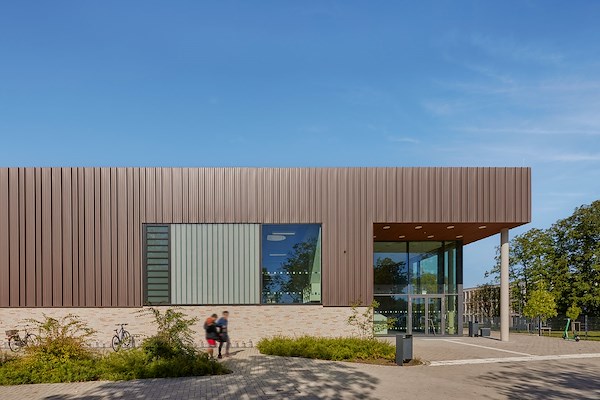 De gevel van de sporthal werd bekleed met felsprofielen van BEMO Systems. Deze unieke gevel combineert functionaliteit met een aantrekkelijk design. De bijzonderheid ligt in de kundige combinatie van twee verschillende felsbreedtes - 305 mm en 500 mm - die afwisselend zijn aangebracht om een veelzijdige en moderne look te creëren.