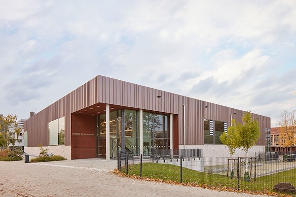 Het Cecilien Gymnasium in Niederkassel kreeg een nieuwe, moderne driedubbele sporthal, die werd bekleed met staande felsprofielen van BEMO Systems.