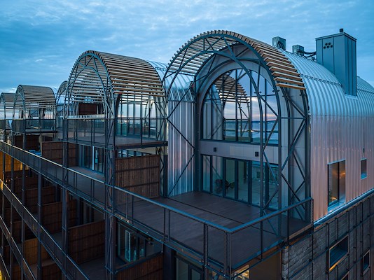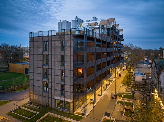 Het gebouw ziet eruit als een oud industrieel gebouw dat tijdens de renovatie werd omgebouwd tot een eersteklas appartementengebouw. Het doel was om een onderscheidend element aan het gebouw toe te voegen en samen met de architect werd dit gerealiseerd in de vorm van een felsdak van BEMO. BEMO leverde bijna 1000m² felsprofielen en maakte ze ter plaatse op maat. Het project werd gemonteerd door onze lokale partner AS Parmet. Het project werd afgewerkt met BEMO sneeuwscherm en BEMO Step voor een veilige toegang.