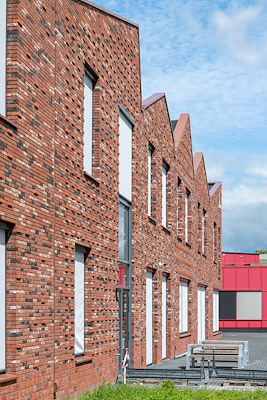 Door de opdeling van de gevel ontstaan verschillende Groninger ‘pandjes’. Door de verschillende metselwerkpatronen en dakvormen is dit extra zichtbaar. Het resultaat: nieuwe gebouwen die toch duidelijk familie van elkaar zijn. Marten: “Op basis van dit ontwerp hebben we samen met de architect passende stenen gekozen en ontworpen. We hebben een mix gemaakt van Groninger rode stenen, met een hoofdrol voor onze Oudeschans. De verschillen tussen de formaten en structuren, aangevuld met strooistenen creëren samen de uitstekende verfraaiing in de gevel.”