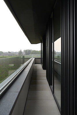 De, speciaal op maat gemaakte, donkere tint (RAL 9004, signaalzwart, SD0307-4077727) past perfect bij de moderne uitstraling van de villa en de fijnstructuur afwerking maakt dat de oppervlakken er verfijnd uitzien