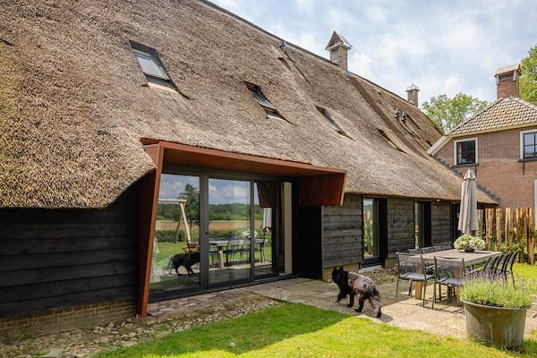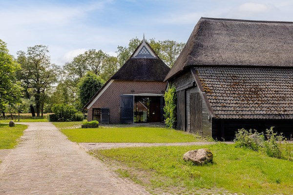 De monumentale boerderij maakt deel uit van een groepje boerderijen rondom een brink. Tegenwoordig wonen op het erf meerdere gezinnen, waaronder onze opdrachtgevers. Zij gaven de voormalige koeienstal (de deel) een nieuwe bestemming als unieke erfwoning.