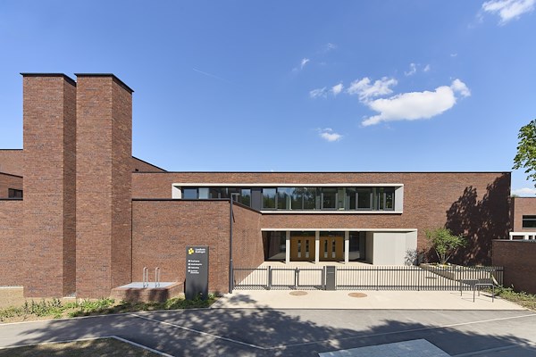 Met de klinker vormde het ontwerpbureau niet alleen de gevel, maar ook interieurs zoals de aula.