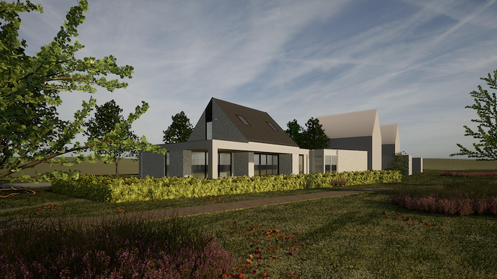 Een modern levensloopbestendig woonhuis met strakke, eigentijdse details biedt comfort en functionaliteit voor alle levensfasen. Het ontwerp kenmerkt zich door open plattegronden en slimme indelingen, zoals een slaapkamer en badkamer op de begane grond. Grote ramen zorgen voor veel natuurlijk licht en een verbinding met de buitenruimte. De strakke lijnen en neutrale kleurpaletten creëren een stijlvolle en tijdloze uitstraling, waardoor dit woonhuis zowel praktisch als esthetisch aantrekkelijk is.