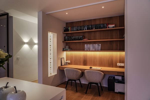 In samenwerking met de interieurontwerper en -bouwer hebben wij hoogwaardige led-verlichting geïntegreerd in diverse maatwerkkasten. Jeroen Bulten: “De 2400K ledstrips zorgen voor een warm en sfeervol effect, aangevuld met minimalistische inbouwspotjes. Subtiel, maar een cruciaal onderdeel van het lichtplan.”