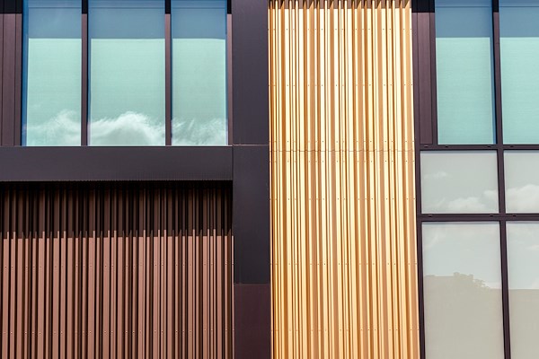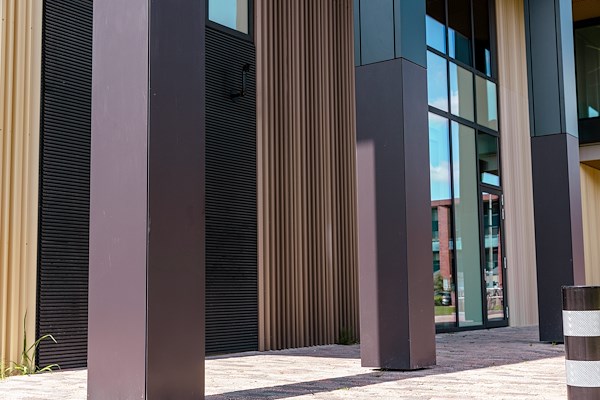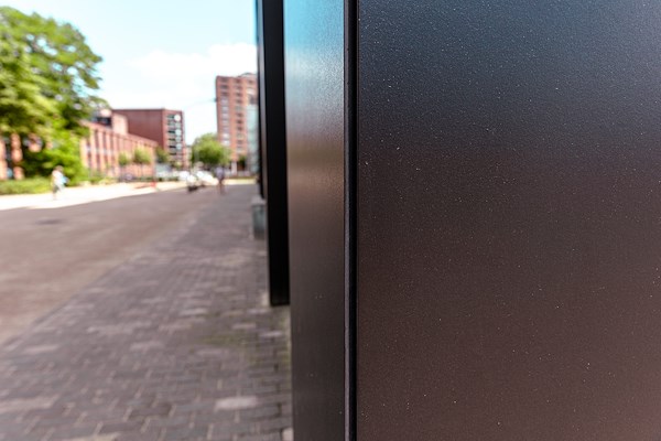 Het gebouw staat voor inclusiviteit. Het onderscheidt zich nadrukkelijk van zijn omgeving door zijn zeer openhartige karakter en heldere vorm. Het rijke lijnenspel in de architectuur is geïnspireerd op de textielpatronen uit het verleden van Helmond. Je ziet in de gevel goed hoe gevelbanden en verschillende materialen als lagen over elkaar zijn toegepast. Voor de gevelbekleding koos Kraaijvanger architecten voor Dekton van Cosentino in de donkere kleur Bromo. Dit is een donkerblauwe tint, met een natuurlijke uitstraling. De kleur is geïnspireerd door homogene metamorfe gesteenten, zoals leisteen. Subtiele, vervaagde markeringen, een zorgvuldig gecreëerde textuur en een natuurlijke look geven definitie aan deze evocatieve kleur die perfect in dit project past. Het streven was om bij de identiteit van Helmond aan te sluiten; stoer, robuust met een rauw randje. Dat is de reden dat er is gekozen voor een donker gebouw. De uitstraling van de gevel voor de gemeente Helmond met haar textiel verleden is een verwijzing naar textiel structuren. De hoofdstructuur van meerdere lagen in de gevel zijn de donkere lijnen die een sterk contrast vormen met de overige, terugliggende lijnen en vlakken.Het was niet alleen de kleur en de vele praktische voordelen van het mateiraal die ons deden besluiten om voor Dekton te kiezen. De grote afmetingen van de platen maakte het mogelijk om de eerste 2,8 meter van de kolommen in één stuk uit te voeren.Daarnaast zijn deze uiterst duurzame gevelpanelen ultracompact, niet-poreus en extreem hard zijn gaan ze decennia lang mee. Het materiaal bestand is tegen alle invloeden zoals onder andere UV-straling en vorst. Tevens behoeft het materiaal weinig onderhoud en is het, indien het beklad wordt met graffiti, eenvoudig te reinigen. (hufterproof)