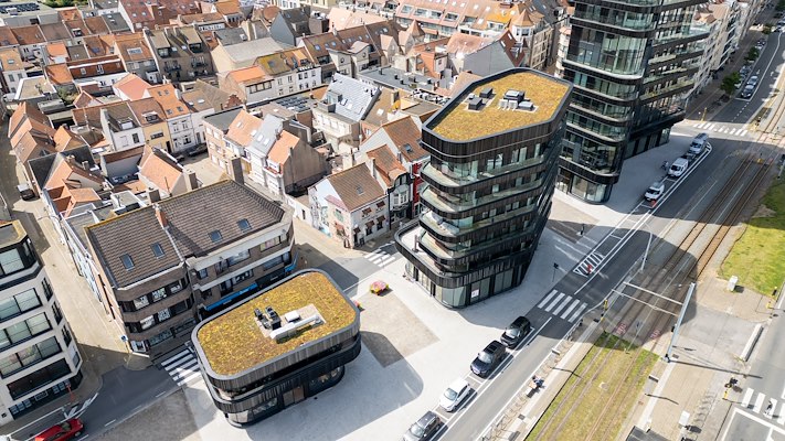Heldentoren Knokke-Heist met groendak - bovenaanzicht