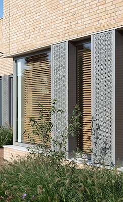 De plastiek van de woningen, bloembakken, tuinmuren en pergola’s vormen een gelaagde overgang tussen de woningen en dit openbare gezamenlijke gebied.