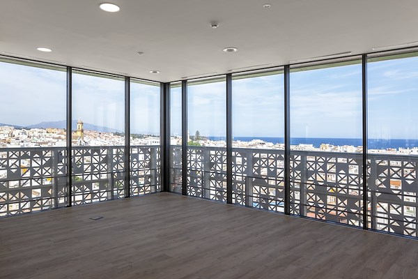 De constante blootstelling van gebouwen aan direct zonlicht vormt een uitdaging die moet worden aangepakt. Daarom is voor het nieuwe gemeentehuis van Estepona gekozen voor de toepassing van een rooster dat het gebouw thermisch afschermt van directe zonnestraling. Deze open schil werkt als een weefsel van licht en schaduw, filtert het licht op een subtiele manier en omarmt op een elegante wijze de bouwstructuur van het gebouw.