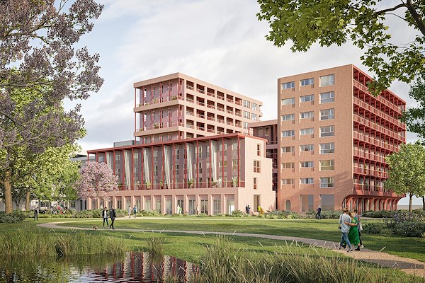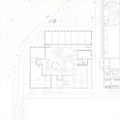 Het project herschikt de volumes die door het masterplan werden aangereikt en schruift ze naar de rand van een park dat door deze beweging substantieel kan vergroten.