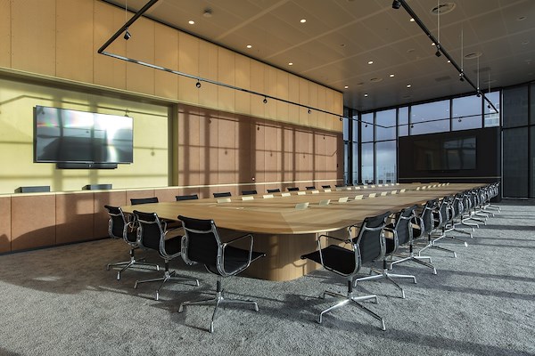 Dat ‘schuilen’ mag ook letterlijk worden genomen, want bij binnenkomst zou je bijna denken dat hier volledig draadloos gewerkt wordt. Een aspect dat naadloos aansluit op de hoogwaardige uitstraling die high-end kantoren kenmerkt. Om kabels en aansluitingen in de boardroom en de vergaderzalen subtiel in het interieur te laten opgaan, adviseerde OCS BACHMANN de elegante