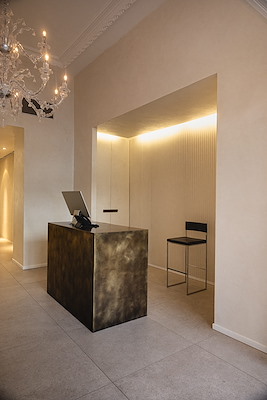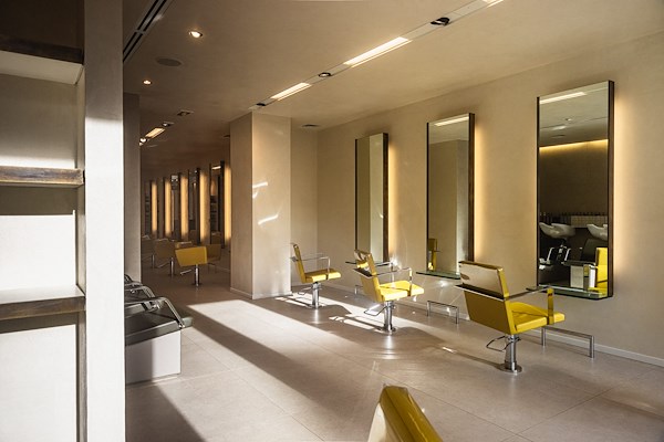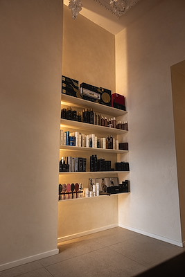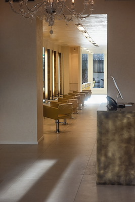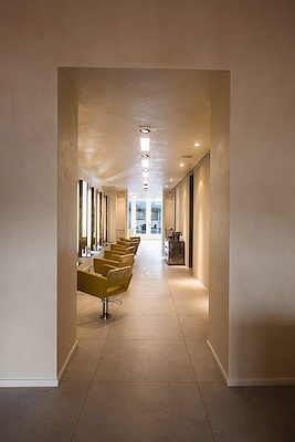 Bij het ontwerp van de verbouwing van dit haarsalon is met uiterste zorg gekozen voor ambachtelijke materialen. Frescolori kalkpleister in de structuur "concrete" is toegepast op wanden en plafonds, om ook hier handcrafted te benadrukken www.frescolori.nl