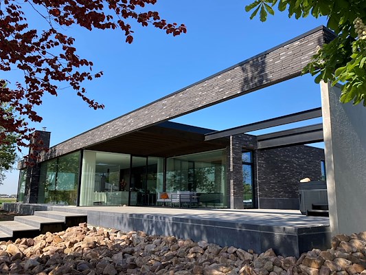 die is gerealiseerd aan de rand van het Nationaal Park ‘Weerribben – Wieden’. De strakke, rustige uitstraling is grotendeels te danken aan het metselwerk met de wasserstrich-sortering Speciaal E2 in langformaat; elegante gevelbakstenen met een kenmerkende mat antraciet zwarte kleur met grijs tot zwarte tinten.