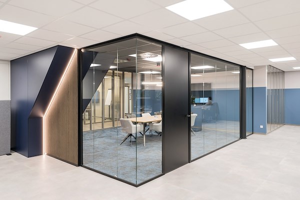 De bestaande glazen systeemwanden bij Hamer die wij bij eerdere verbouwingen hebben toegepast, zijn hergebruikt in het nieuwe ontwerp. Deze Second Life wanden komen uit onze TC-lijn; glascassettes met dubbel glas. De glaswanden zijn gedemonteerd en herplaatst om zo weer jaren mee te kunnen in het nieuwe ontwerp. Deze duurzame oplossing laat wederom zien dat duurzaamheid en duurzame techniek belangrijke onderdelen zijn binnen de bedrijfsvoering van Hamer.