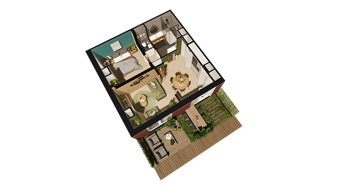De vorm van de “Mountain Valley” is zo ontworpen dat alle buitenruimten met elkaar in contact staan. Elke bewoner heeft een privé buitenruimte van formaat, ongeacht de grootte van het appartement. Oftewel, buitengewoon leven in een groen landschap op elke hoogte.
