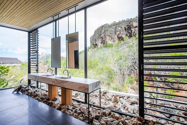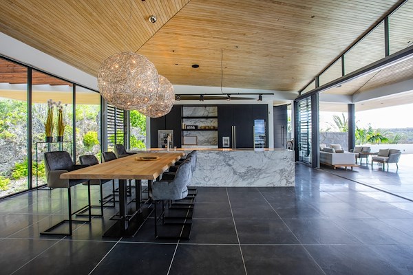 Ons belangrijkste doel in het Caribisch gebied is om de binnen- en buitenruimtes optimaal met elkaar te verbinden. Deze villa is het perfecte voorbeeld van het laten samensmelten van binnen- en buitenruimtes. De natuurlijke doorstroming van de ruimtes elimineert elk gevoel van beperking. Of je nu in de badkamer bent of in de keuken, het ontwerp zorgt ervoor dat je je nooit verloren voelt in deze ruimtes, maar juist vrij en verbonden met de omgeving.