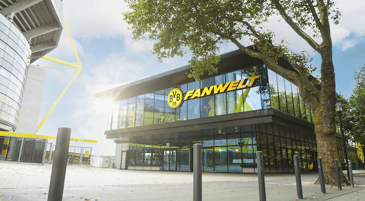 De BVB-FanWelt in Dortmund is met meer dan 2.000 vierkante meter een echt paradijs voor fans van Borussia Dortmund. In de zogenoemde "Fan World" komen merchandising, services en een café samen onder één dak. Een opvallend kenmerk is de verglaste façade, waardoor bezoekers al van verre het zes meter hoge BVB-logo en de 'FanWelt'-belettering kunnen zien. Dit ontwerp straalt openheid en toegankelijkheid uit – kernwaarden voor zowel de club als de regio.