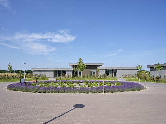Het landgoed is vormgegeven als een eigentijds nederzetting. De verschillende gebouwen zijn gesitueerd rondom een centrale verblijfsruimte, het erf.