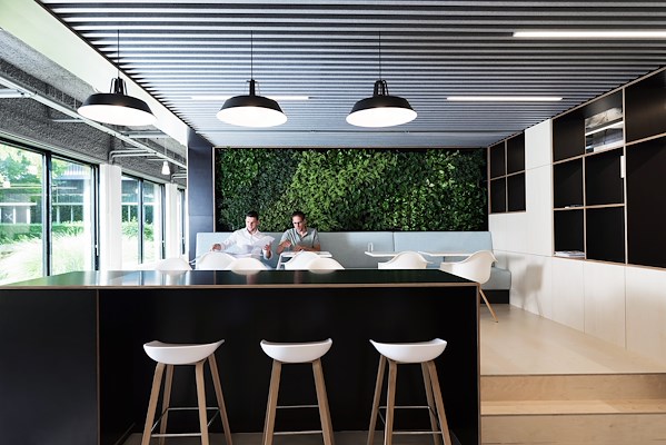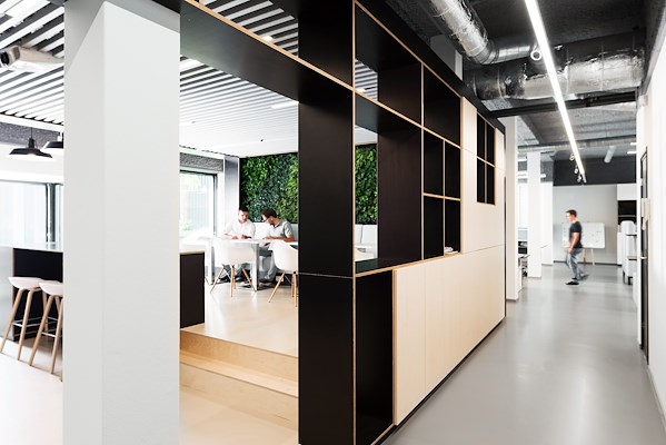 Door het gebruik van betonplex als hoofdmateriaal maken we een duidelijke link met onze bouwgenen. Er ontstaat zo een hele mooie balans tussen sociale ruimte, teamruimten en overleg-/focusplekken. Het samenwerken wordt gestimuleerd door de nieuwe inrichting en dit brengt ons niveau van werken op een nog hoger plan.