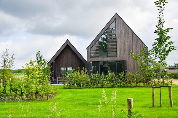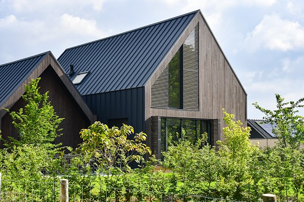 Deze prachtige villa hebben we voorzien van een unieke voorgevel, door middel van vouwluiken en structurele vaste luiken in een punt. Doordat de houten bekleding op de vouwluiken exact overeenkomt met de gevelbekleding is de zonwering voor deze woning één met de gevel.