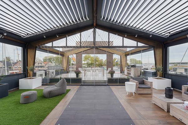 In Bunschoten-Spakenburg realiseerde Artino een prachtige overkapping. Het dak bestaat uit lamellen. Groot voordeel van dit type overkapping is dat de lamellen open kunnen draaien. Als de lamellen zijn gesloten, dan is de overkapping ook nog eens volledig waterdicht. Een ideale oplossing voor een prachtige locatie zoals deze.