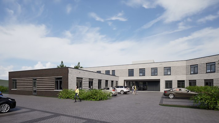 Ondanks dat er verschillende zorgfuncties gehuisvest zijn, voelt het gebouw als een eenheid. Diverse functionaliteiten mogen gevoeld worden maar zijn niet letterlijk van binnenuit vertaald. Hierdoor ontstaat er geen gefragmenteerde massa opbouw.