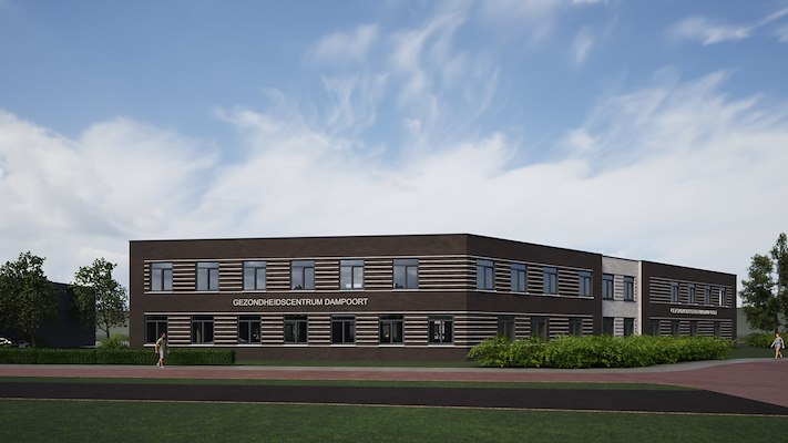 GZC Dampoort is een groot gezondheidscentrum met twee bouwlagen, waar veel zorgverleners samen onder één dak komen. In het anderhalvelijns gezondheidscentrum zal een huisartsenpraktijk, psycholoog, polikliniek, apotheek, dermatoloog en nog vele andere gevestigd worden.