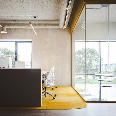 Voor dit project heeft Ditt Officemakers een unieke en sfeervolle werkomgeving gecreëerd. Het kantoorontwerp is volledig afgestemd op de wensen van de opdrachtgever en combineert moderne en klassieke elementen. De inrichting valt onder anderen op door de gewaagde profielkleur okergeel (RAL1024), een opvallende keuze die warmte en energie uitstraalt. Op de