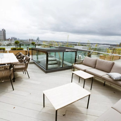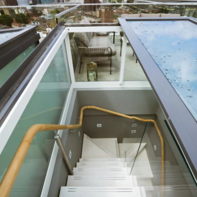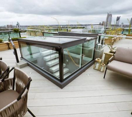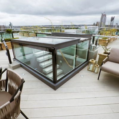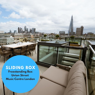 De zeven penthouses van het spraakmakende pand ‘The Music Box’ aan Union Street in Londen bieden een unieke woonervaring met een panoramisch uitzicht op de iconische skyline van de stad. De privéterrassen van de penthouses zijn bereikbaar via een innovatieve glazen elektrische daktoegang, de Sliding Box, die zorgt voor een naadloze en harmonieuze overgang van binnen naar buiten.
