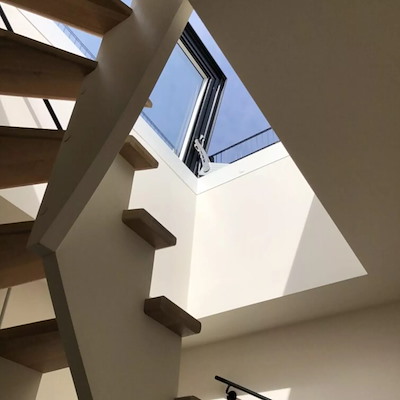 Glazen dakluik, toegang tot dakterras en daktuin
