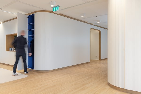 We ontwierpen een kantoor dat contrasterende elementen in balans brengt en menselijke interactie prioriteert. De ruimte is verdeeld in drie zones: een rustig focusgebied, een samenwerkingsruimte voor vergaderingen, en een informele interactiezone. We voegden accenten van blauw toe in gebieden waar teamwerk floreert, als symbool voor de rol van Karl Storz in het samenbrengen van diverse vaardigheden.