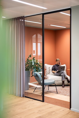 Het team kan altijd kiezen voor een werkplek die aansluit bij de werkzaamheden van dat moment.