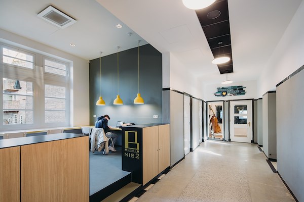 Als onderdeel van de renovatie zijn onder andere de oude garderobenissen weer opengemaakt en getransformeerd tot studieplekken, en de ooit overgeschilderde fijngrind-lambriseringen in de centrale hallen en trappenhuizen weer teruggebracht. Ook hebben we de oorspronkelijke kleurstelling weer teruggehaald - waar dit op basis van onderzoek bekend is - en hebben we nieuwe brandwerende deuren geïnstalleerd, uitgevoerd als kopie van de originele, mét de oorspronkelijke verfijnde detaillering. Daarbij letten we niet alleen op ‘originaliteit’, maar ook op duurzaamheid: zelfs de oude vloerisolatie van zeegras is hergebruikt.