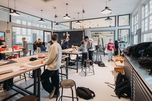 Tegelijkertijd vergrootten we de lokalen door wanden te ‘verplaatsen’, maakten we op de plek waar eerst wandkasten zaten zichtvensters naar de lokalen en creëerden we met een doorbraak tussen de begane grond en de kelder een dubbelhoge ruimte voor muziekonderwijs, waarmee de school nu een auditorium heeft; de voormalige gymzalen zijn omgevormd tot practicumruimtes voor kunst en wetenschap. Zo hebben we met verantwoorde ingrepen moderne leslokalen en bijzondere ruimtes gecreëerd, binnen een karakteristiek Rijksmonument op een belangrijke plek binnen Plan Zuid.