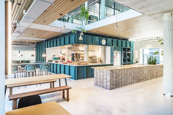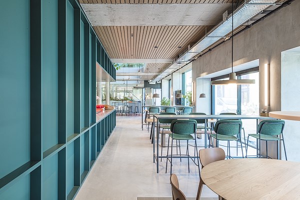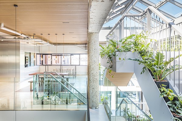 Een flexibel kantoorconcept, met een interieur vol met natuurlijke materialen, daglicht en groen