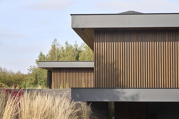 In een van deze nieuwe landschapskamers is een nieuw familiehuis ontworpen. De oriëntering op de zon en de ligging en uitzicht in de landschapskamer is leidend in het ontwerp. Door enkel natuurlijke en donkere materialen te gebruiken, probeert het huis op te gaan in zijn natuurlijke omgeving.