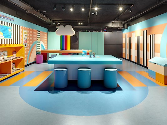 Door de brede waaier aan kleuren past het linoleum van Tarkett perfect in de wereld van LEGO. In Brussel heeft het Deense speelgoedmerk hiermee een inspirerende omgeving gecreëerd, zodat de bezoekers volop kunnen genieten van de interactieve LEGO-attracties.