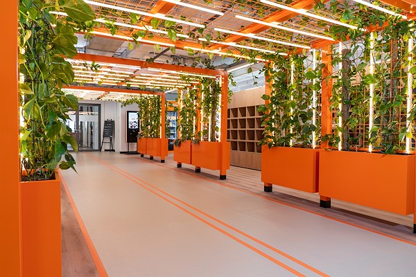 Bij Just Eat Takeaway staat het welzijn van medewerkers centraal. Het bedrijf begrijpt dat design een fundamentele rol speelt bij het creëren van een inspirerende en comfortabele werkomgeving. Er wordt veel waarde gehecht aan aspecten zoals goede ventilatie, voldoende daglicht en bewegingsvrijheid. Het doel is om een huiselijke en aangename sfeer te creëren, waarbij ontmoetingen tussen medewerkers van verschillende afdelingen worden gestimuleerd tijdens koffiemomenten in strategisch geplaatste pantry's. Bovendien biedt het kantoor diverse eventruimtes, brainstormplekken en vergaderruimtes als complete ontmoetingsplek.