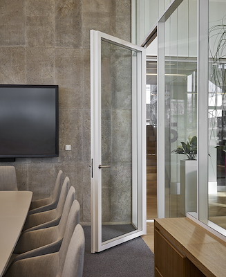Voor de binnenwanden is bewust gekozen voor het hoogwaardige IQ-Structural systeem met dubbel glas. Deze keuze is niet alleen esthetisch verantwoord, maar ook functioneel: het glas biedt uitstekende akoestische prestaties en draagt bij aan een stille en comfortabele werkomgeving. Dankzij deze combinatie van design en functionaliteit is het vernieuwde Ondernemingshuis een plek geworden waar samenwerking, inspiratie en professionaliteit centraal staan.
