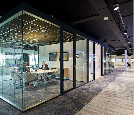 Vrijstaande glazen kantoren of meetingsrooms met superieure akoestiek