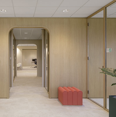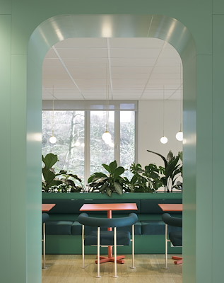 Hollandse Nieuwe transformeerde een bestaand, traditioneel en gesloten kantoor voor ZonMw naar een hybride werkomgeving: open, toekomstbestendig, sociaal en gastvrij. Bij een organisatie die zich al decennialang inzet voor een goede gezondheid van iedereen, mag een eigen gezonde werkruimte natuurlijk niet ontbreken. Leidraad in ons ontwerp: welzijn voor de gebruiker, het toepassen van non-toxic materialen in het interieur en de juiste context voor de grote kunstcollectie om te stimuleren en inspireren.Voor ZonMw veranderde in de loop der tijd de manier van werken en groeide het bedrijf in aantal medewerkers, waardoor ook gebruik van het kantoor veranderde. De werkomgeving functioneerde niet meer optimaal en naar tevredenheid, zowel in look and feel als in faciliteiten. Mensen komen naar kantoor omdat ze elkaar willen ontmoeten, samen willen werken en dan het liefst in een omgeving die net zo comfortabel voelt als thuis.
