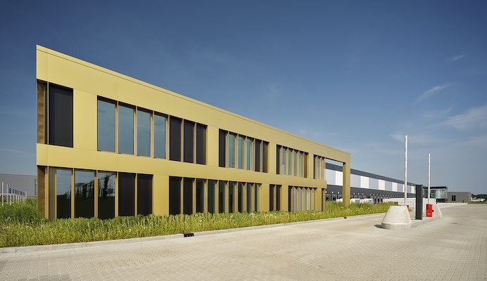 uit Roermond is betrokken bij het ontwerp van DC Drunen. De messing tinten zijn een opvallende eyecatcher bij het ontwerp. Een mooie link naar de activiteiten die in het verleden plaatsvonden op deze locatie. Het distributiecentrum maakt gebruik van de reeds bestaande infrastructuur. Dat maakt bouwen op een brownfield extra duurzaam.